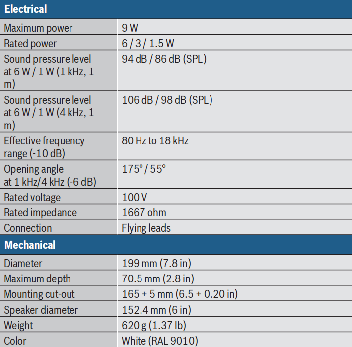 Bosch LHM0606/10 Ceiling loudspeaker 6W metal with clamps / Public Address System / PA system / Easy Installation